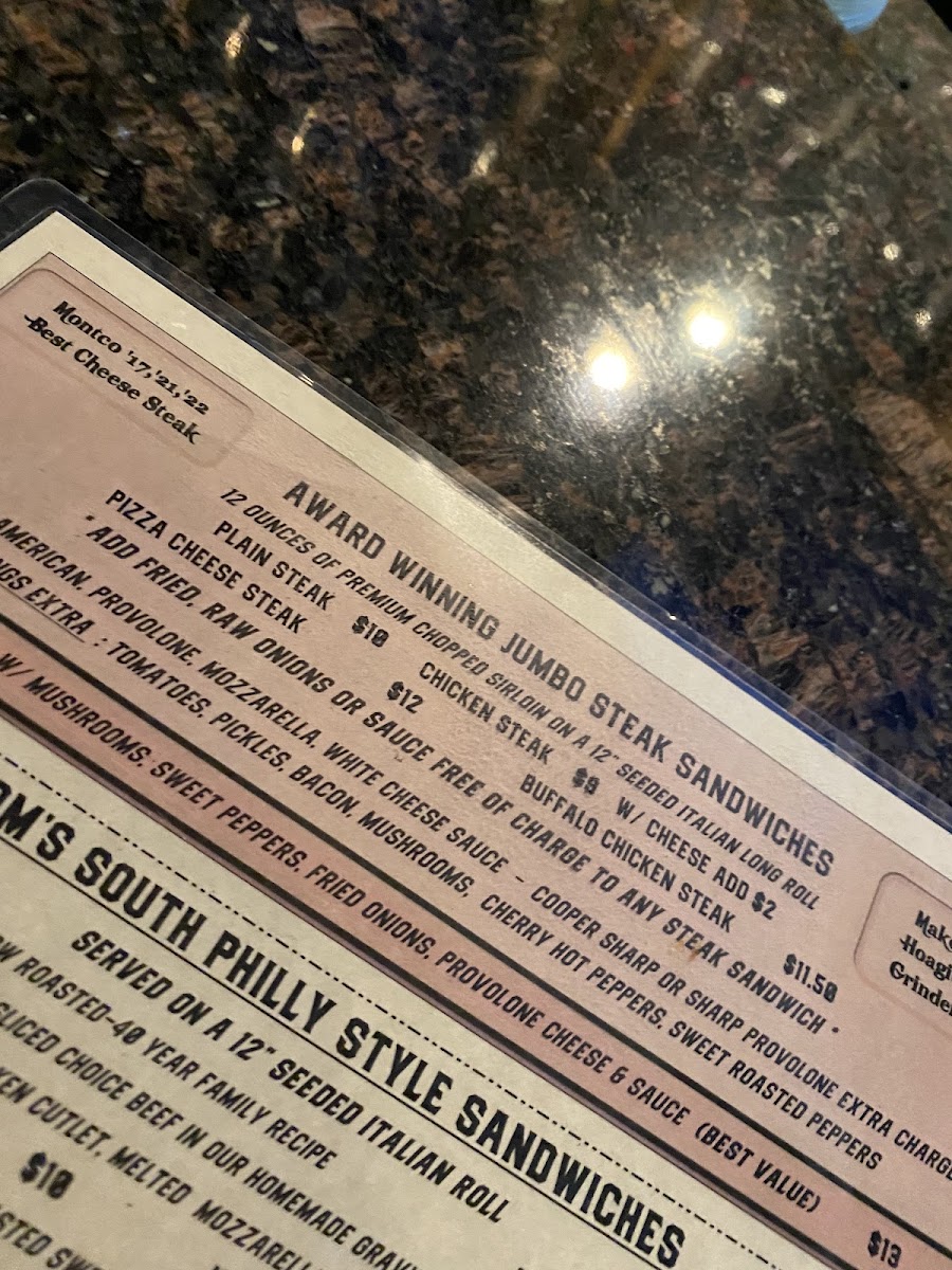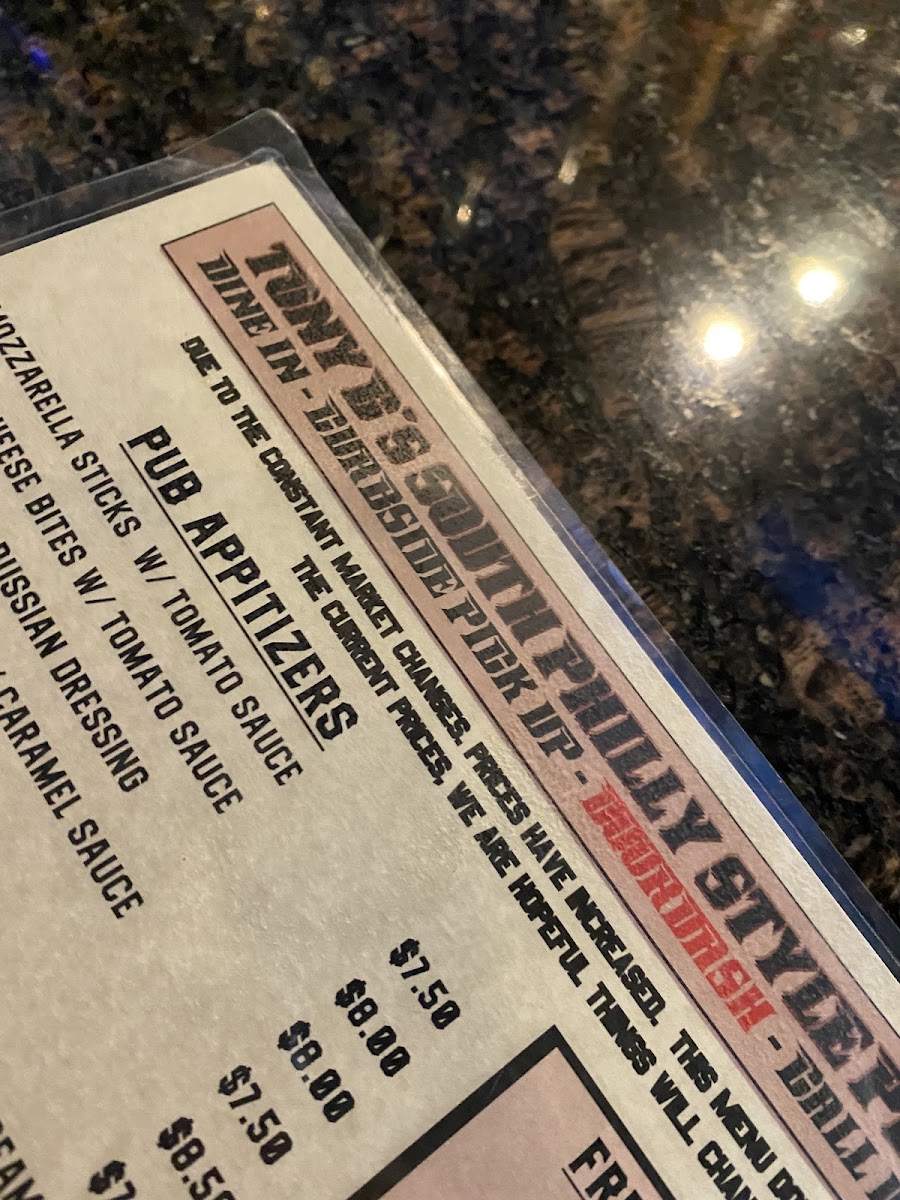 Welcome to Tony G's Pub and Eatery, a hidden gem in Norristown, PA that blends a lively bar atmosphere with delectable comfort food. Located at 1991 W Main St, this restaurant shines with a menu that caters to hearty appetites. Start your meal with their signature Fries & Tater Tots, including the indulgent Smothered Fries topped with bacon and white cheese sauce for just $9.00. Don't miss the Original Zep Sandwich, a local favorite at $6.00, packed with flavors of salami and Provolone. For the adventurous, the Nashville Hot Chicken Sandwich offers a delightful kick at $12.00. Diners appreciate the friendly service and the unique, homely vibe, making it a perfect spot for those looking to enjoy great food and drinks. Just a heads-up: the smoking-friendly environment may not suit everyone.